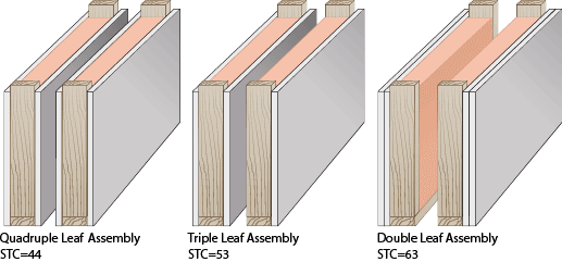 Saturday was a busy day in SoBu (South Bushwick, think this name will catch on?). We hit a snag with the plans for soundproofing in that my research I discovered that the air cavity we'd end up with would be maybe too little. Essentially, more air space means more sound isolation. It appears to go again logic, but we need fewer layers of drywall up there to get the best results. Please consult this handy diagram for relative STC (Sound Transmission Class) ratings (higher is better):  By keeping the original ceiling intact, we'd have a "triple leaf" which is less effective than a correctly-built double leaf. Of course, we're not really building a full double leaf (which would involve two sets of separate joists and is something that doesn't really fly for a ceiling that's only 6.5'). Ripping a ceiling down is fun. It took like a half hour to rip out some 150 square feet of double-layer drywall. It was a little tricky getting it out from around the pipes and conduit, but everything came out fine. Before we knew it, we had exposed all the joists (that probably hadn't seen light in 30-some years), happy to find nothing rotten or any human skulls or anything. The downside of course was the clean-up.   I had like 5 contractor trash bags left and those filled up within minutes with at least half the floor covered with rubble. Lucky for me, there's a contractor supply place two blocks away (Henry Distributors, 1674 Broadway) that sold me a box of 100 for $30. We bagged up the rest of the debris and Buzz started hauling the bags outside. Our cellar has those horizontal metal cellar doors with cement stairs leading down. While this is way better than the hole-and-ladder configuration most houses have, the stairs are really steep and the clearance of the doorway is minimal. And these bags were really really heavy. I don't know how we got all 10 (!) out onto the areaway so quickly. We basically were done in two hours (though it would take four hours to begin to recuperate for me). As of Friday all the supplies have been ordered, most of which will be delivered Saturday morning. I'm annoyed with the new snowfall, as it almost definitely means nobody will be showing up today to pick up the trash, and it means it the plywood I've been storing out back will be all snow-covered, and I need that stuff indoors so it can dry out. There are still a few things I'm not sure how we'll handle but at least we're getting there. The rest of the evening was spent going to the early show at the Knitting Factory to see Trans Am, Oneida and Big Bear. I wanted to go to this show because I really like Big Bear. But I was disappointed by the set; one of their guitarists left the group and appears to have been replaced by some keyboardist (red flag!), and worse, the lead singer is no longer barking in that shredding 'hardcore' screamo voice and sounds now like a little girl shrieking into the mic. She mentioned something about being sick, but it occurs to me that she says this at nearly every show. And wouldn't a cold actually make a voice more guttural and scratchy? I guess singing that way has finally taken its toll. Oneida was good, as usual, but I don't think I like seeing them at clubs like this. They played some old stuff like "All Arounder," which was always one of my favorites. They didn't play "Up with People," which was fine with me, I'm getting a little tired of that one. We went to Nancy Whiskey Pub at the early hour of 10:30 and somehow stayed until the bar closed. There was a bacherlorette party going on there with a lot of sorority-types present. At first irritated by their presence, we concluded that it was admirable for people like that to have a bacherlorette party at a bar known mostly for its grizzly old men who hang out there. Labels: Bands, Bars, Renovation, Soundproofing