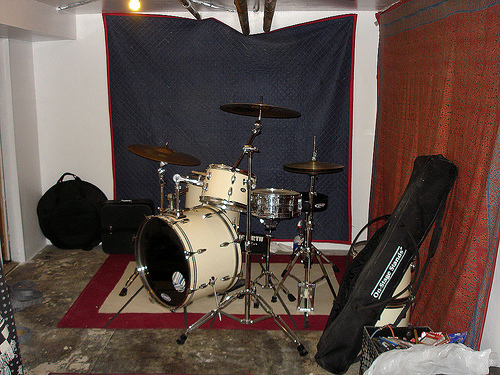 Later that same night I wondered aloud why I was so concerned about our noise. From the time practice ended, we heard countless elevated trains rumbling by, several vocal arguments on the streets, and a bunch of gunshots. However, I feel if my neighbors complain about the music and bring up the potential of gun violence, this may be misconstrued. I gotta get more of those moving blankets! They're heavy and have several layers to them, this might really solve my cheapskate acoustic issues! I still need bass traps to suck of the boominess, but we're off to a good start? Who can remember our setlist? Because we sure can't. Oh, and confidential to Al: You will notice the light fixtures and bx cable are now safely (more or less) tucked away amongst the radiator pipes. Thank you for your angry concern. Labels: Motico, Music, Neighbors, Renovation, Soundproofing